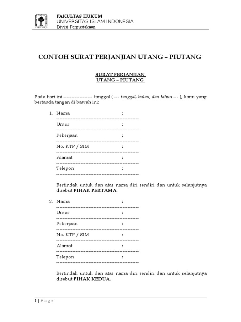 Contoh Surat Perjanjian Utang Piutang Fh Uii from imgv2-2-f.scribdassets.com We did not find results for: Maybe you would like to learn more about one of these? Contoh surat kuasa penagihan hutang piutang. Check spelling or type a new query.